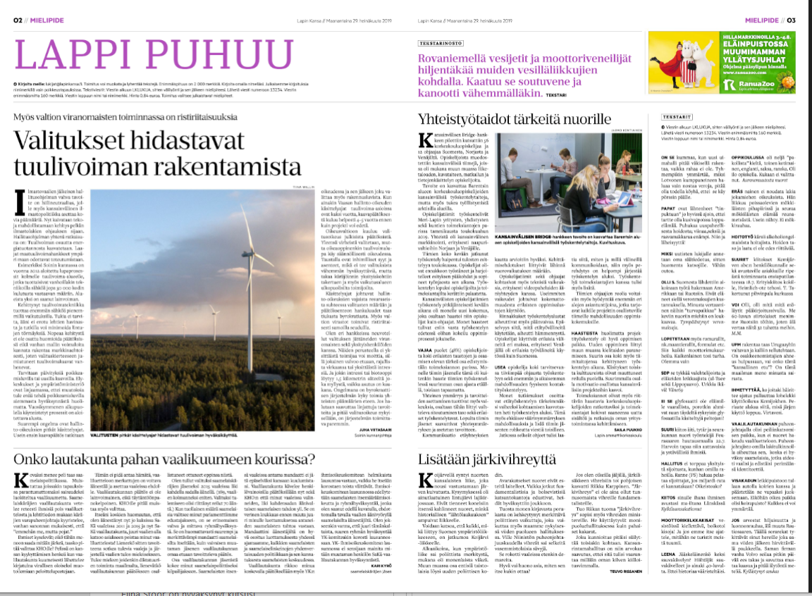 29.07.2019 – Lukijalta: Yhteistyötaidot tärkeitä nuorille by Saila Puukko Article in Finnish – Lapin Kansa web